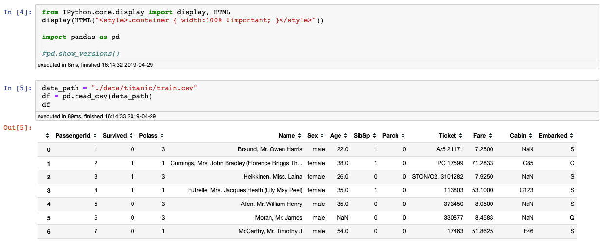 dataframe이 notebook cell의 마지막에 있으면 내용을 예쁘게 table로 보여주는데,